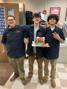 HOSA held a Gingerbread House decorating contest Dec. 16, bringing students together to showcase their creativity and teamwork. Students formed teams of four to five and were provided with a gingerbread house, frosting and decorative items. Students were also allowed to bring up to three outside edible items to use in their design. The top three teams with the most votes earned the chance to get out of class Dec. 17 to watch Christmas movies with hot cocoa and snacks, with the first place team choosing the movie.