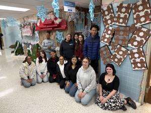 One of the holiday displays created by the Mental Health & Behavioral Sciences students at BAVTS transforms the hallway outside their classroom into a cheerful, welcoming winter scene. The space is filled with handmade decorations, including oversize paper snowflakes hanging from the ceiling, festive string lights and colorful paper chains that frame the display and highlight the students’ work.