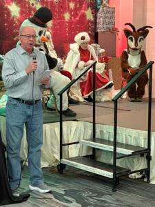 Radio personality Mike Kelly of B104/iHeart Radio was on hand to entertain the families and provide holiday music for the event. Kelly was assisted by technician Archie Lucia and radio station sales representative Steve Flank.