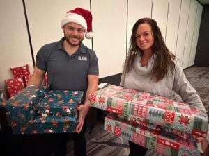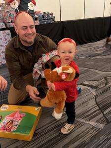 He called families one at a time for the children to come to the stage to visit with Santa and friends while families took pictures. As children left the stage, they were greeted by Santa’s helpers and GLVADA members Kristi Moyer and Travis Yohe of Black Glass Automotive Styling. Moyer and Yohe presented each of the children and their siblings with four gifts. The children appeared overjoyed to receive the presents which they opened and started playing with while they enjoyed the party.