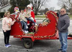Santa arrived from up north in an attractive red sleigh filled with Christmas presents for the Daniels family. Mrs. Claus was there incognito wearing civilian clothes.