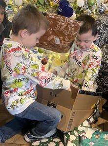 Gifts were provided to the Daniels family and delivered by Santa of the Santa of Lehighton group. Mrs. Claus (Crystal Roader) was also present. The Grinch roaming around in cheerful spirits was Zaylynn.