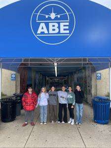 CONTRIBUTED PHOTOSStudents from the Catasauqua Middle School Student Forum show off their tree as part of Lehigh Valley International Airport’s annual Festival of Trees. The 15 trees decorated by local schools will be available for public viewing through Jan. 1, 2026.