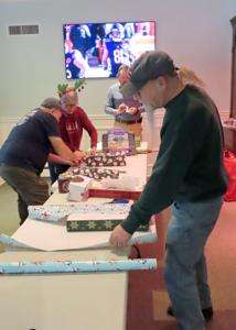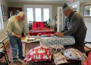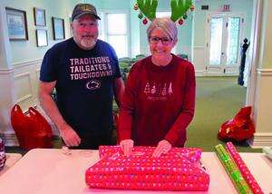 Press Photo by C. Richard ChartrandMembers of the Emmaus Lions Club recently gave of their time to wrap gifts to help spread joy during the holiday season. ABOVE: Dr. David and Cathy Hay work together to wrap gifts. Additional photos appear on Page A6.