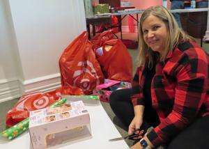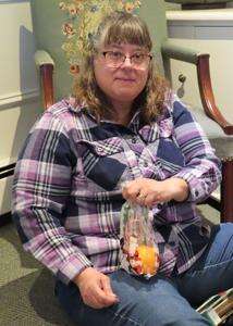 PRESS PHOTOS BY C. RICHARD CHARTRANDDonna Litzenberger packs oranges, candy canes and chocolate bars for Christmas stockings.