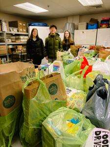 Students stand with donations collected for the Cedar Crest Food Bank.