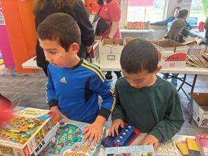 Abigail and Lana Achey look at books at the book sale at the Lower Macungie Township Library recently. Friends of the Lower Macungie Township Library holds a used book sale once or twice a year.