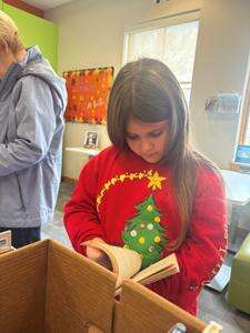 PRESS PHOTOS BY SHARON SCHRANTZOlivia Ottinger reads a book at the Lower Macungie Township book sale recently.