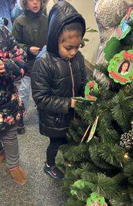 Elysse Delgado looks at the ornaments on the tree.