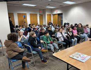 ABOVE: Second grade students have a seat in the meeting room at the administration building following a tour.