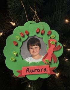 Aurora Anthony’s ornament has her school picture on it.