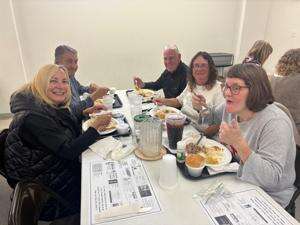 PRESS PHOTOS BY SHARON SCHRANTZJean, Ron and Dennis Heffelfinger, Lisa Semler and Jean Maura enjoy their pork and sauerkraut dinner at St. John’s UCC Church, 139 N. Fourth St., Emmaus recently.