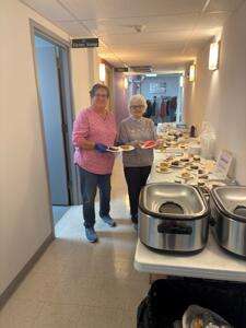 These ladies have the sweet job of serving desserts. Karla Haring and Shirley Hillegas contribute their service to the St. John’s UCC dinner.