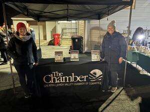 Hayden Rinde and Chloe Krempasky represent the Greater Lehigh Valley Chamber of Commerce at the Alburtis Holiday Festival recently.