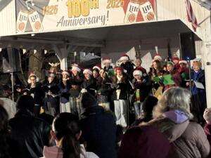 The Lower Macungie Middle School Cadence Choir performs at Alburtis Park during the Alburtis Holiday Festival.