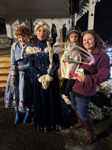 Anna and Elsa from the Character Co. and Aurora and Eileen Sara enjoy the Alburtis Holiday Festival.