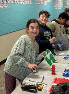 The Salisbury Elementary School PTO held its annual holiday shop recently where students had the opportunity to shop for holiday gifts for family members. Volunteers helped wrap the gifts for the students. RIGHT: Emma Cramsey and Daniel Vetere are at the wrapping station at the Salisbury Elementary School holiday shop.PRESS PHOTOS BY REBECCA FOEHRKOLB