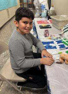 Arisha Waheed checks out her purchases made at the holiday shop.