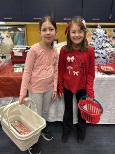 Ainsley Suhock and Adalyn Reinhart are loading their shopping baskets with gifts.