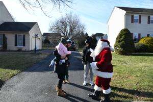 Santa stops to give a youngster in the Alton Park development a candy cane during Western Salisbury Volunteer Fire Company’s annual Christmas Santa Run through neighborhoods in the western side of the township Dec. 20.