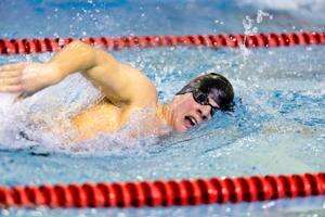 500 freestyle: 1. Jacob Piccini (P) 4:59.31, 2. Ethan Coleman (P), 3. Wyatt Sullivan (P);