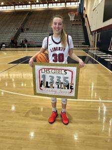 “I kept updating her every game so she could know where she was at because it was one of her personal goals for the year,” said Liberty coach Jarrett Carnes, “so now she’s eyeing-up being the actual all-time scorer for both boys and girls.”