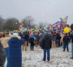 The first Lehigh Township Noon Year’s Eve event was held Dec. 31, 2025, at Bryfogle Park, Berlinsville. Despite the freezing temperatures, about 200 people attended for the noontime balloon and beach ball drop.