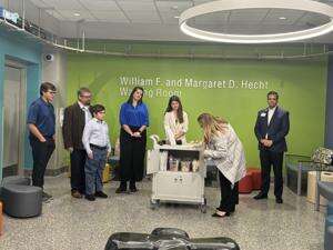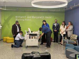 Recently, Lehigh Valley Hospital/Jefferson Health hosted a dedication ceremony to honor August David Adler, who died in 2015. Adler died the day after he was born. His family donated an Adalyn Rose Foundation Remembrance Cart to the emergency department at Lehigh Valley Reilly Children’s Hospital, part of Jefferson Health. RIGHT: A dedication ceremony for the Adalyn Rose Foundation Remembrance Cart honoring August David Adler is held in the waiting room near the Breidegam Family Children’s Emergency Room at Lehigh Valley Hospital recently.CONTRIBUTED PHOTOS