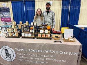 PRESS PHOTO BY DEB GALBRAITHThe 23rd annual Fall Eastern Pennsylvania Home Show was held at the Agri-Plex, Allentown Fairgrounds. Approximately 95 vendors offered information, tips and products to those who attended. Left: Katie Myers and Nick Lobach, of New Tripoli, have a table at the home show to showcase their business, Pappy’s Rocker Candle Company.