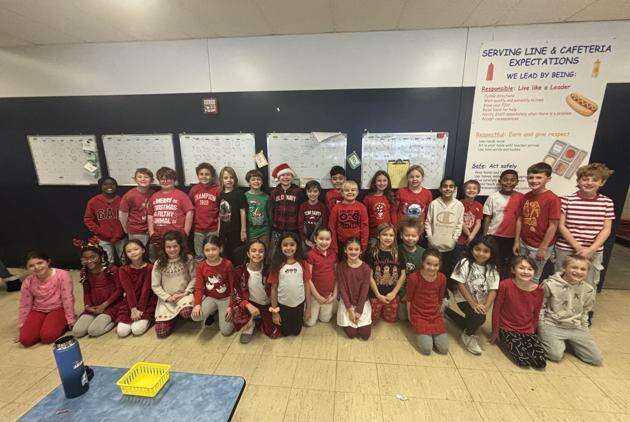 Press photo by Rebecca FoehrkolbStudents in Eric Molitoris’s and Matthew Somishka’s classes gather for a photo wearing red and white for Candy Cane Day at Salisbury Elementary School. The spirit day happened during the recent holiday season.