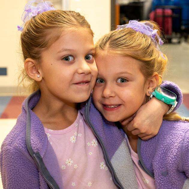 ABOVE: Twins Kallie and Quinn Lacko share sisterly love during the Kernsville Elementary School “Twins and Triplets Day.” Story and additional photos appear on Page A2.
