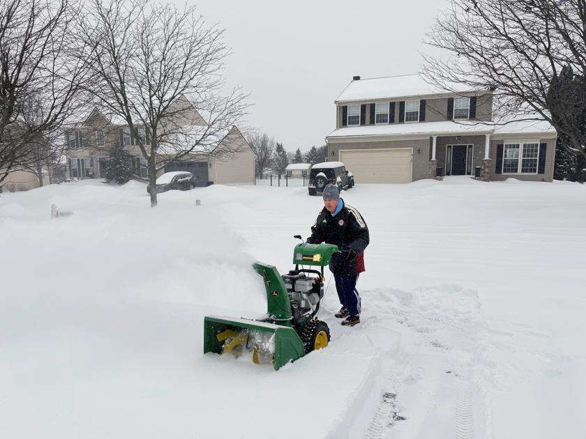 PRESS PHOTOS BY LISA DRAPERDrew Draper, of Lower Macungie Township, tries to stay ahead of the storm by getting the snow plowed just as the changeover to sleet occurred.