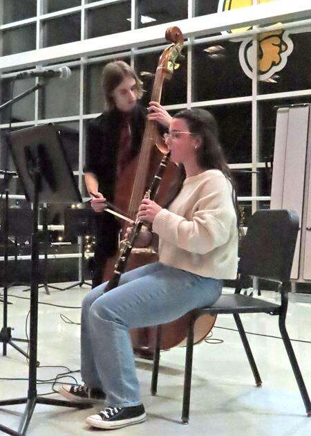 PRESS PHOTOS BY C. RICHARD CHARTRANDEmmaus High School held its first coffeehouse of the year Jan. 30. There were 27 performances scheduled at this informal musical talent night including everything from classic rock to country to classical to international. The coffeehouse has been presented for 22 years. LEFT: Lindsay Doyle and Ivan Felegly play a bass and clarinet duet of “Greensleeves” arranged by David Burndrett.