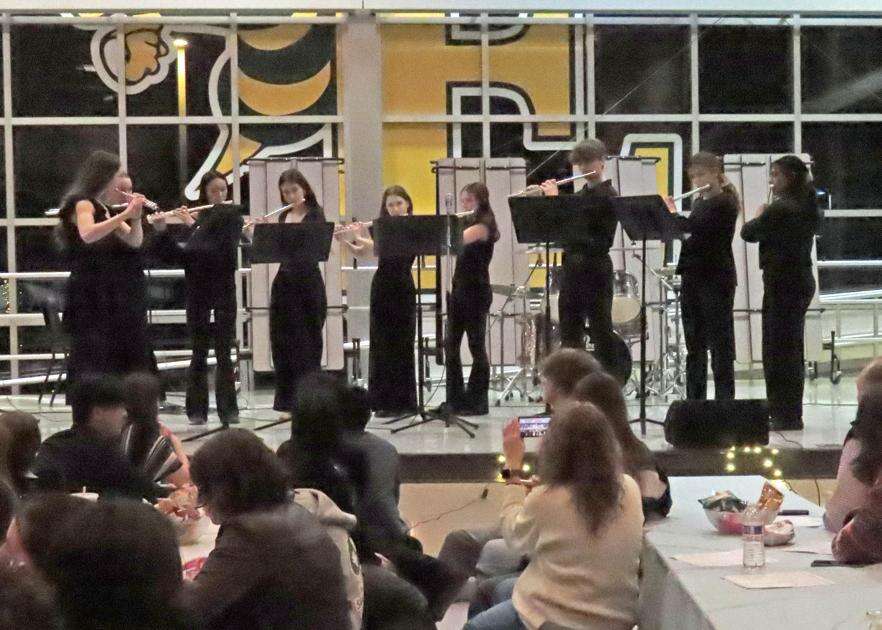 The nine piece flute choir performs a classical piece “Sinfonico for Four Flutes,” a movement by Anton Reicha. The piece is performed by Alexis Andreas, Hannah Barbehenn, Nick Comano, Danica De La Cruz, Nora Hoffman, Anisha Kundu, Marliegh Llewellyn and Abigail Perez.