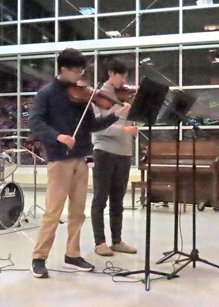 RIGHT: Zining Fan, on violin and Thomas Amdur, on piano, play the “Kreutzer Sonata, Movement #1” by Ludwig van Beethoven.