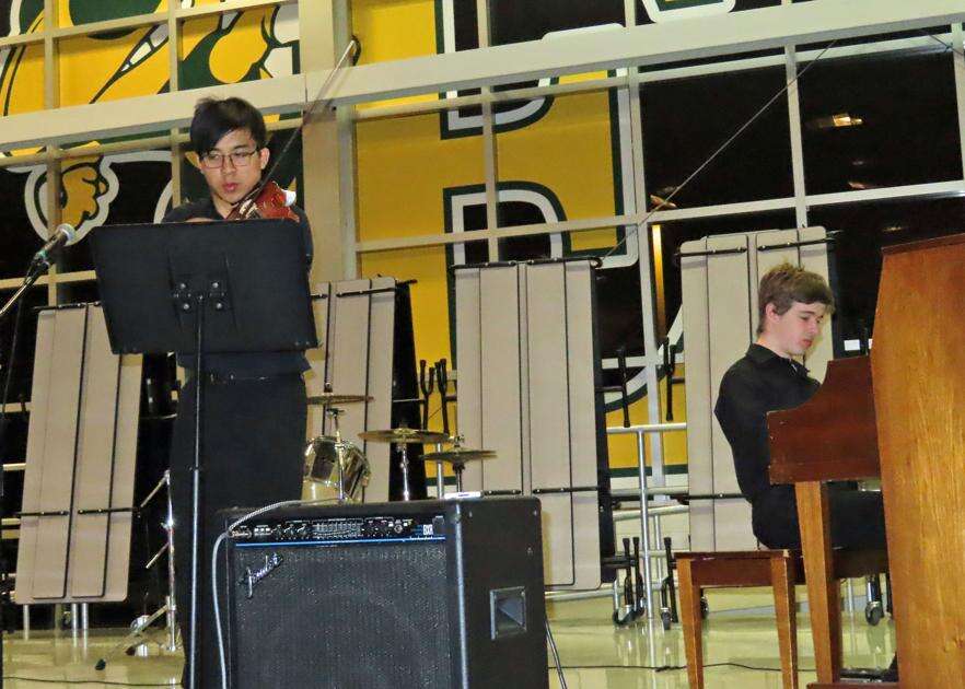 PRESS PHOTOS BY C. RICHARD CHARTRANDOn viola and violin Kyle Chan and Caleb Yu perform “I See the Light” from “Tangled.”