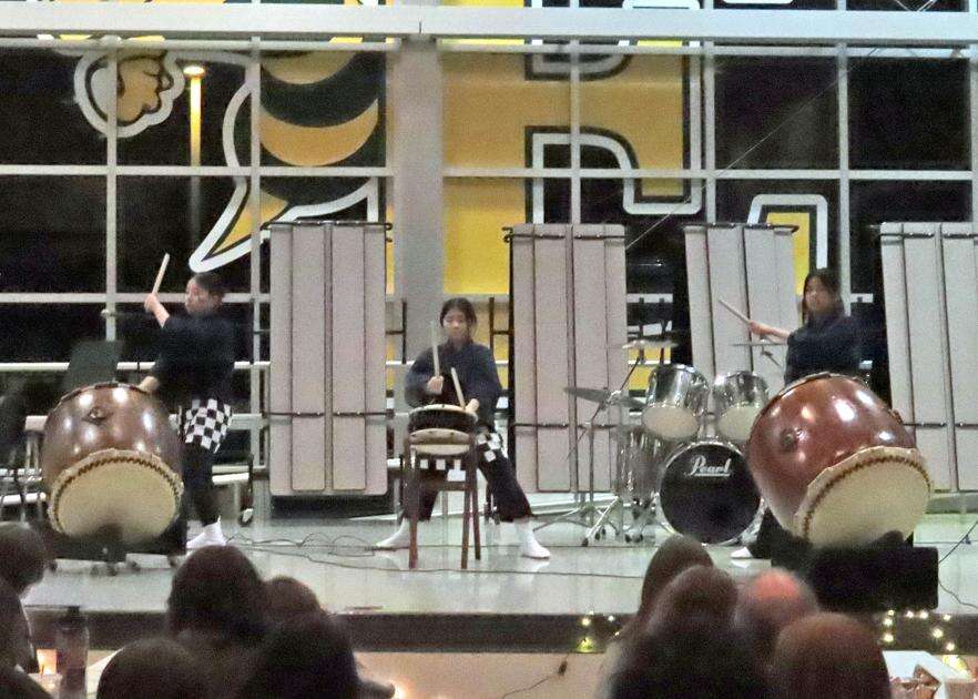 ABOVE: Narumi Furuoka, Manami Furuoko and Kana Fujimaki perform “Iroha Taiko” on Japanese drums.