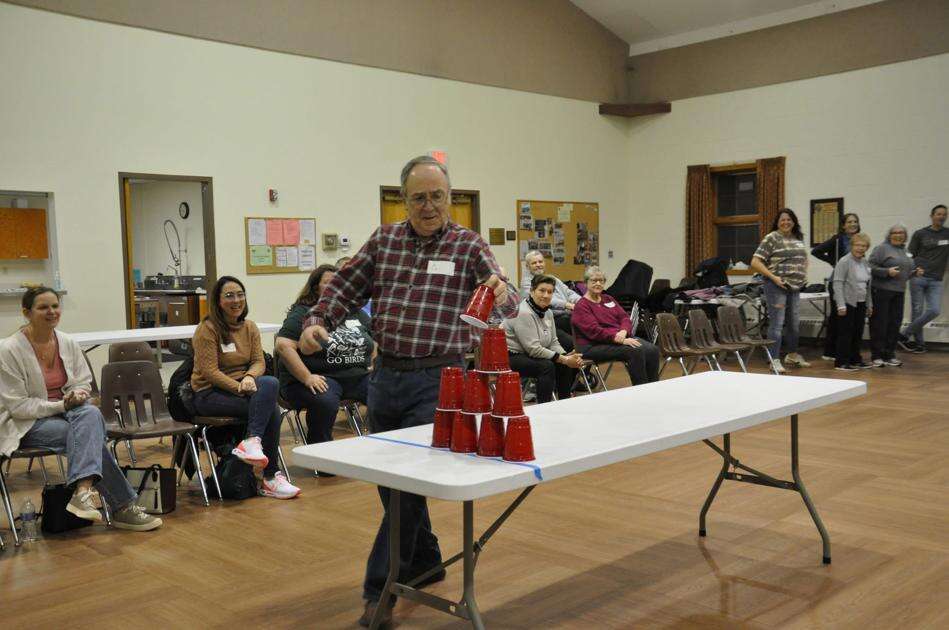 Calvin Ayres tries his hand at cup stacking at the recent Jordan UCC’s Koinonia Group physical and mental challenges.