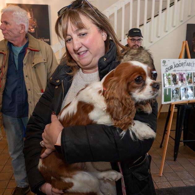 Wendy Furbur, of Lower Macungie, holds her foster pup “Merido,” an 8-month-old King Charles Spaniel at the Sanctuary at Haafsville Puppy Bowl held at the Retriever Brewing Company, 2844 Township Line Road, Orefield, Feb. 8.