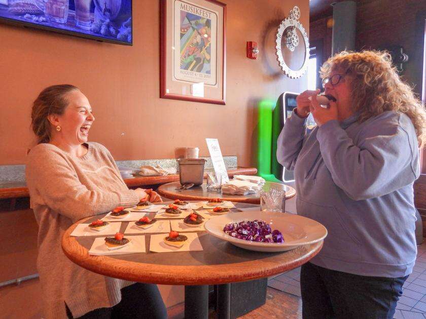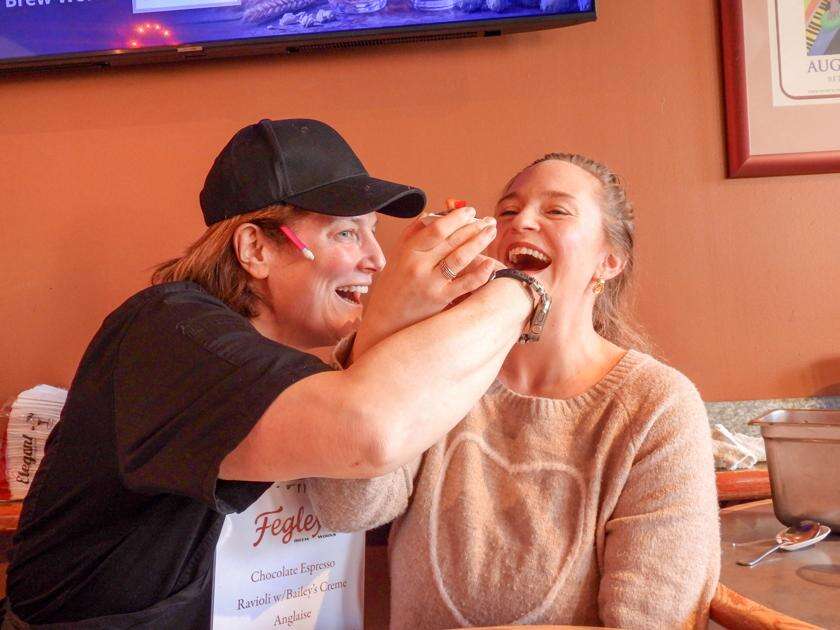 Things were bustling at Fegley’s Bethlehem Brew Works in The Main Street Commons, where staff members Megan and Christine were serving up Chocolate Espresso Ravioli with Bailey’s Crème Anglaise and fresh strawberries, a treat created by Executive Chef Jill Oman.