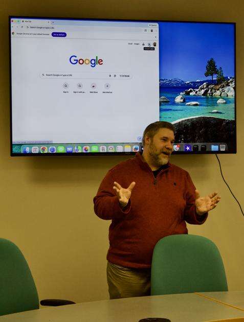 Salisbury Township School District’s Coordinator of Technology Chris Smith explains how to utilize Google’s organizational tools during the Feb. 11 technology session for Salisbury residents. The district is providing a series of free workshops for novice tech users each month. The next workshop will take place March 11 and will focus on “Sharing Moments & Memories with Google Photos and Slides.”