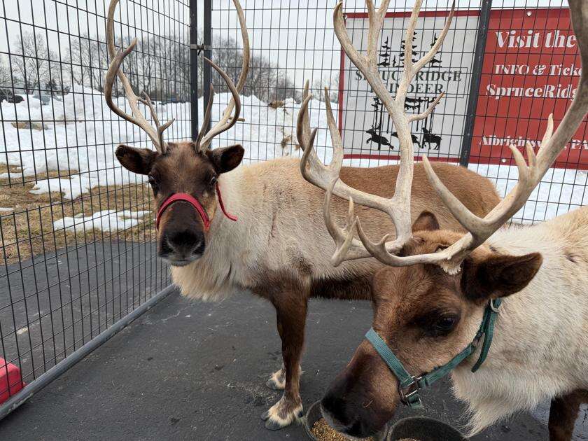 Both male and female reindeer shed their antlers each year. Schulte explained antlers are like fingerprints. Each set of antlers is unique to the reindeer. “We know them by their unique antlers. We have a difficult time recognizing them when they shed their antlers,” she said. She said each of the reindeer have playful personalities and like to play games with their handlers. Spruce Ridge has 10 total reindeer with a little baby reindeer born last year. The farm also provides tours.