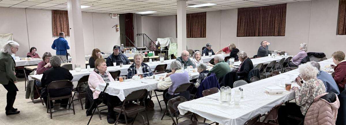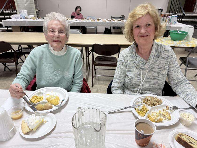 The dinners were offered for dine-in or takeout. Betty Rabenold, of Catasauqua, and Barbara Verba, of Whitehall, enjoyed friendly conversation as they ate their dinner.
