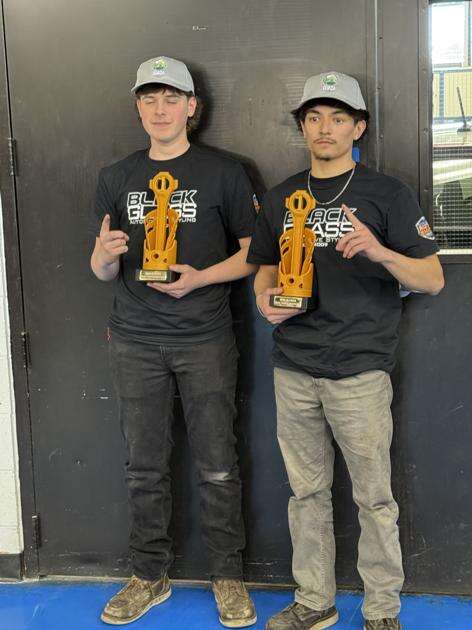 Third-place winners — Elias Carrero, grade 11, mechatronics; and Taylor Sipel, grade 11, prepared speech