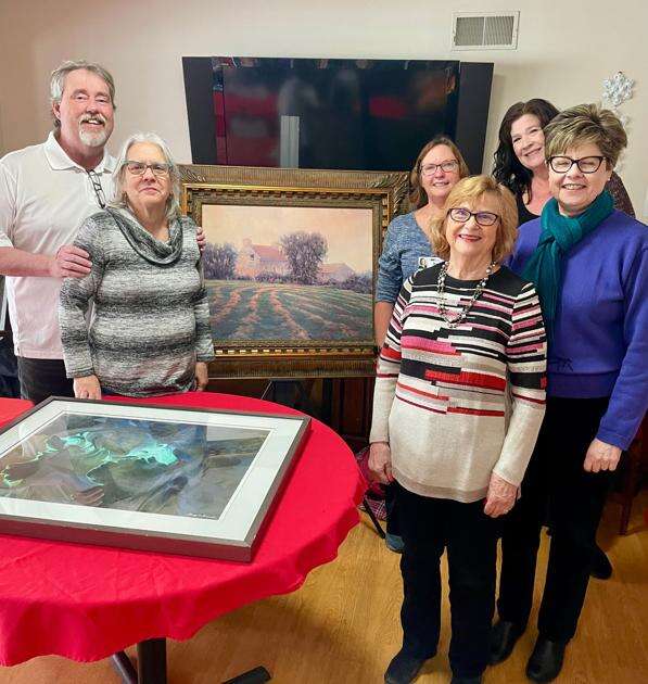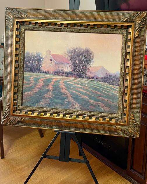 One large painting of a large stone farmhouse entitled “Making Hay” by Andrew Peters was also donated by Karen and Larry Pimble.
