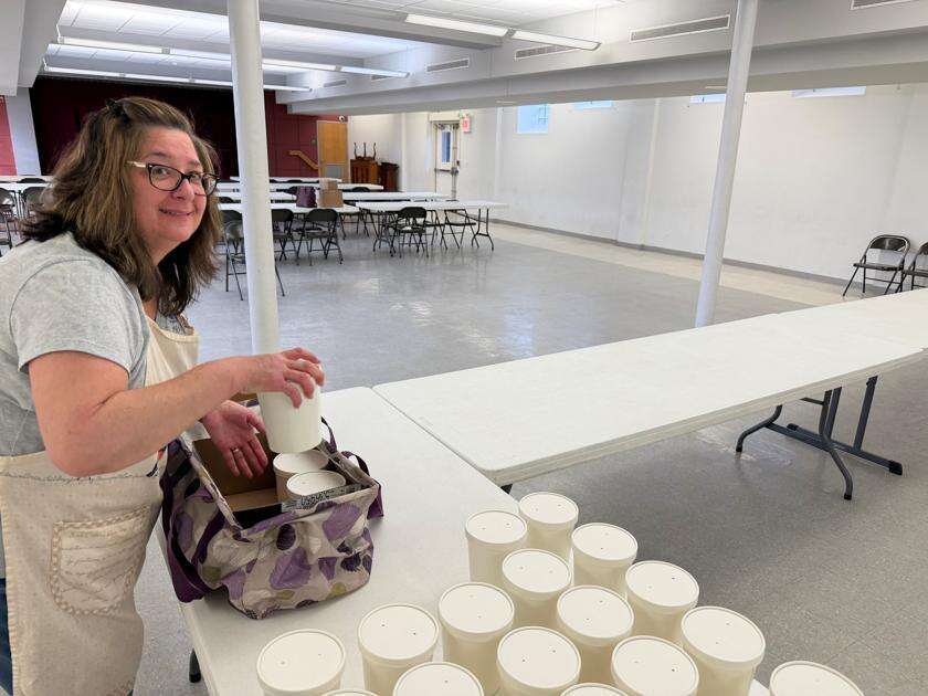 Member Jim Schaeffer appreciated the work of the volunteers as he entered the church hall, the “delicious smell of chicken” engulfed his senses. Kaufman noted the volunteers package more than the preorders for people who want to purchase additional soups during pick up between 10 a.m. and 2 p.m.