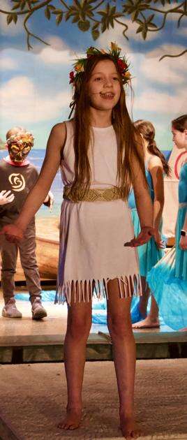 The Willow Lane Elementary School Theater production of “Moana JR.,” under the direction of Stacy Albright, performed to the delight of audiences Feb. 26-28. LEFT: The cast, led by students Gray Murphy as Moana and Greya Scott as Maui, set sail on the open seas in an effort to save Moana’s people.Additional photos appear on Page A11.Press Photo by Kathy Hassick