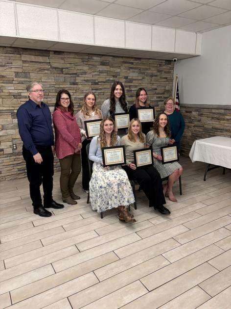 Northampton Exchange Club held its Students of the Month recognition dinner in March to honor seniors who have shown excellence in academics, school activities, out-of-school activities and work responsibilities. Pictured from left, seated, are Brooke Spadaccia, Lauren Reznick and Liv Jusinski and, standing, Wayne Mery, Kim Belletti, Garbrielle Rothrock, Isabella Pecuch, Hailey Laury and Linda Mery.