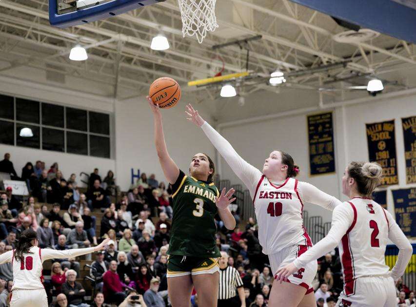 Emmaus pulled to 12-10 before Gabby East hit a three-pointer to give Emmaus its first lead of the night with 3:59 left in the first half. Olive Whitney hit the second of two foul shots ahead of another three from East and as the teams went into the break, Emmaus held Easton to just two points in the quarter and enjoyed an 18-14 lead.