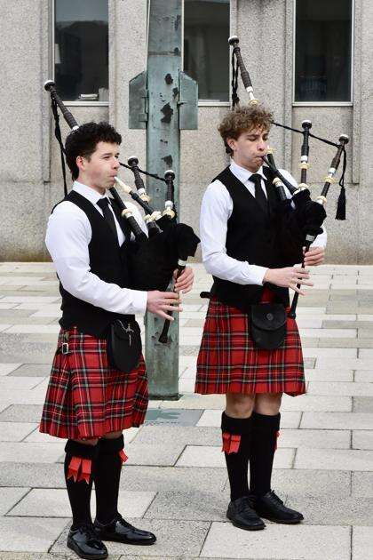 Grenadier bagpipers Brady Carvajal and Liam Schoenaver, both seniors, played two selections during the ceremony.
